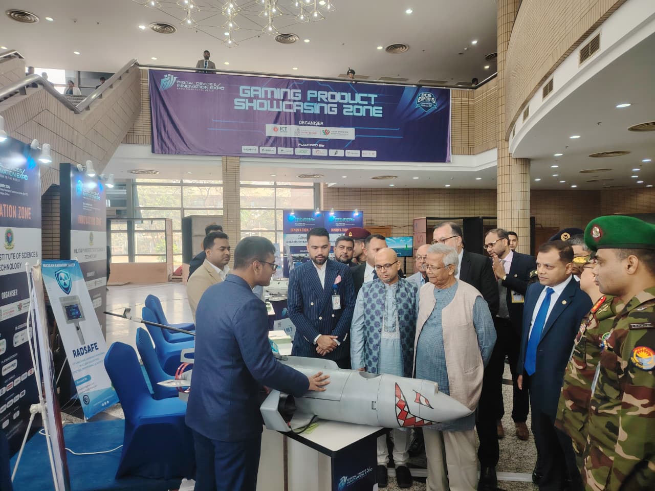 Honourable Chief Adviser Dr. Muhammad Yunus visited the Innovation Zone of the Digital Device and Innovation Expo 2026, organized by the ICT Division, where five innovative projects from Military Institute of Science and Technology (MIST) were showcased.